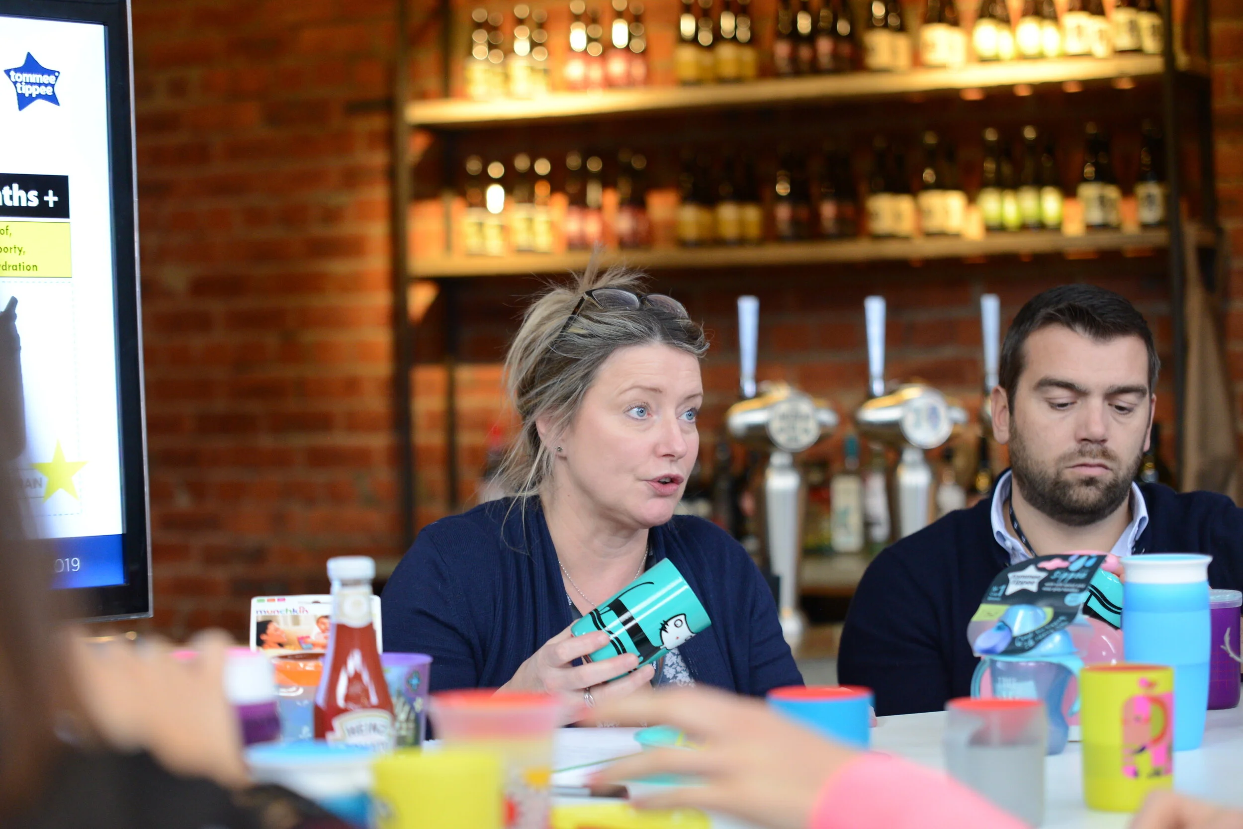 To convince stakeholders to invest in capital, and trade teams to sell into stores, a bit of theatre was needed to demonstrate how easy it is for a toddler to spill their drink when not concentrating; and showing that the No Knock cup is ketchup-proof.